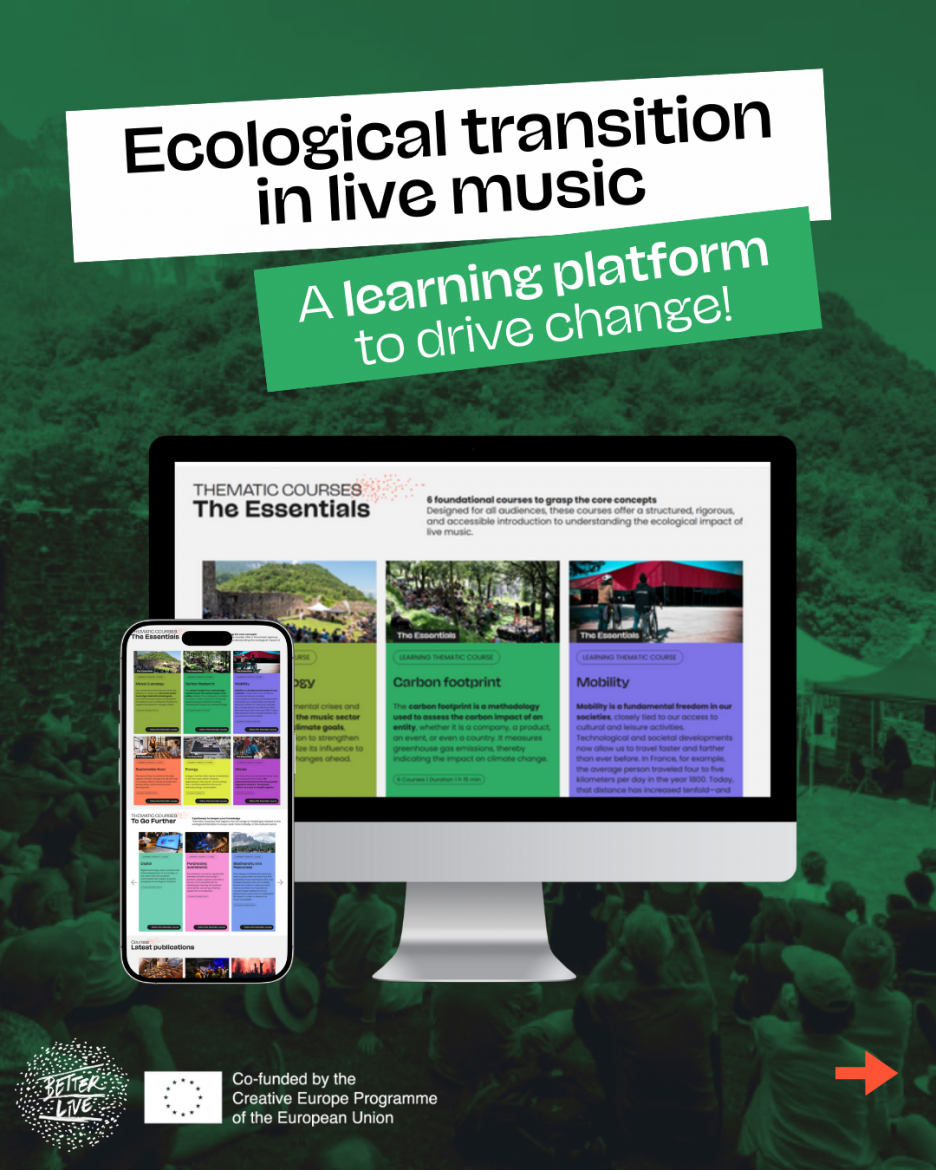 Mednarodni glasbeni trajnostni projekt Better Live, v sklopu katerega pri nas kot glavni partner sodeluje Zavod Sploh, ki povezuje še mnogo drugih regionalnih akterjev, je prešel v svojo zaključno fazo. Po organiziranju koncertov, festivalov, konferenc, po raziskavah, beleženju in analizah vseh aktivnosti se je vzpostavila še spletna učna platforma za ekološki prehod v glasbeni industriji v obliki MOOC (Massive Open Online Course) tečaja.